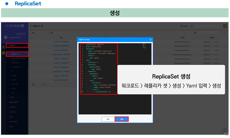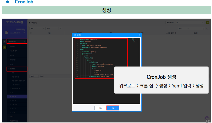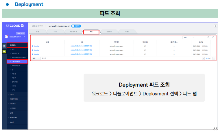 - SECloudit에서의 Pod는 워크로드에 해당하며 생성은 yaml파일을 통해 쉽게 생성이 가능하다