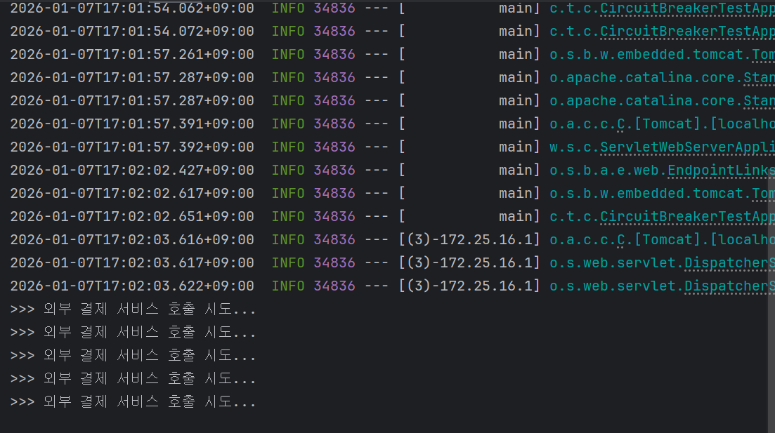 → 모든 결제 API가 타임아웃으로 장애 확산 - 서킷브레이커 적용 시: