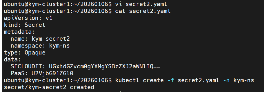 1. secret값을 설정할 secret yaml파일 생성 (data는 암호화 적용)