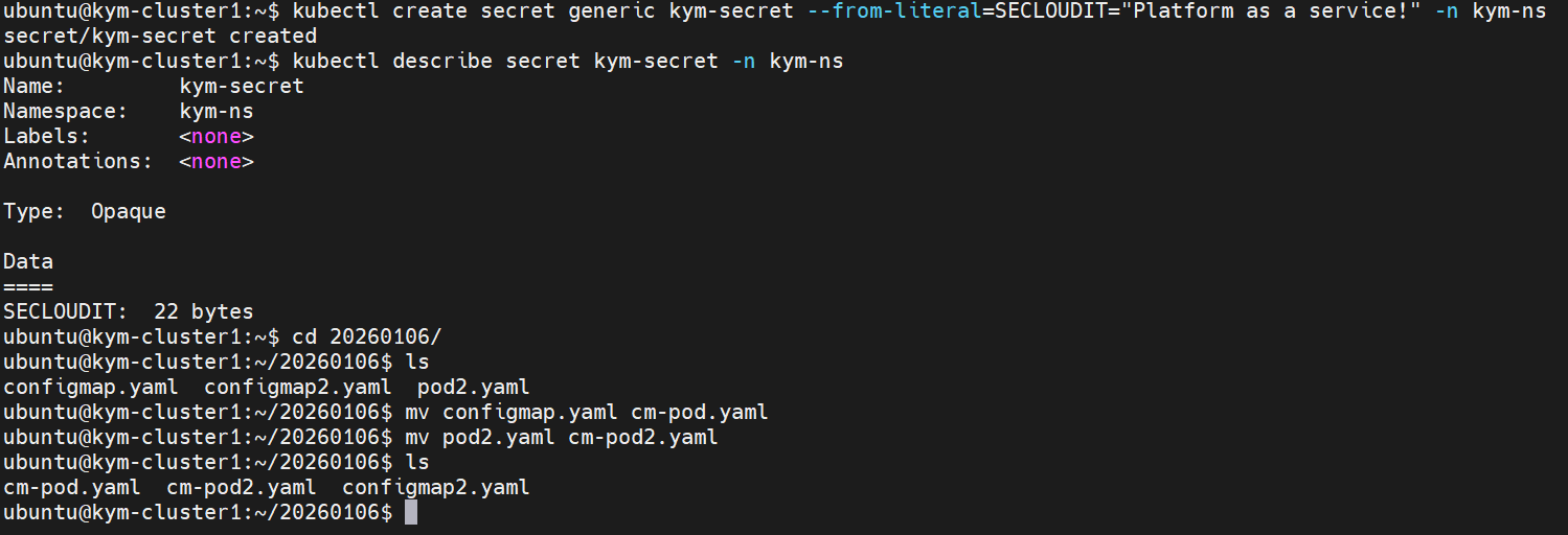 2-1. secret 값을 활용한 실습(secret - CLI버전)
