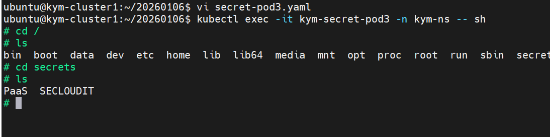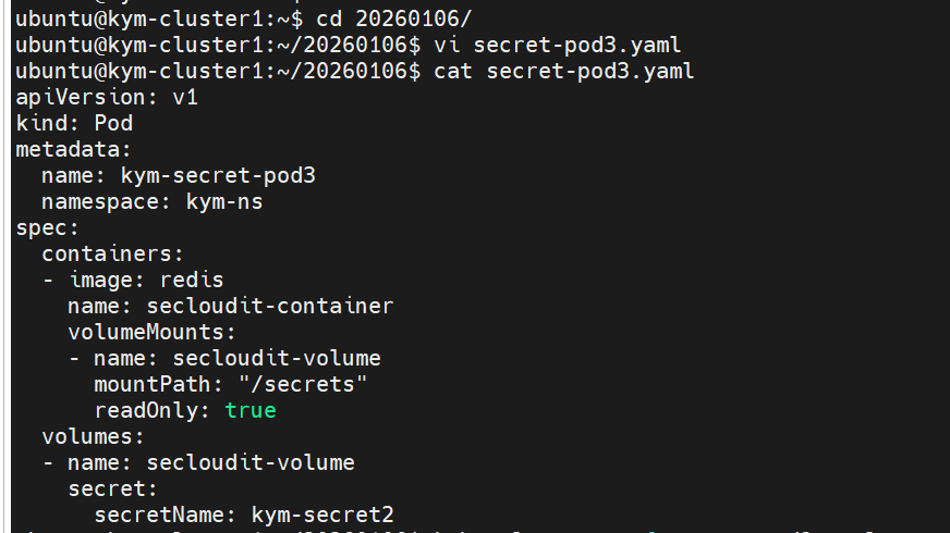 2-3. secret 값을 활용한 실습3 (등록된 secret 마운트 하여 적용)