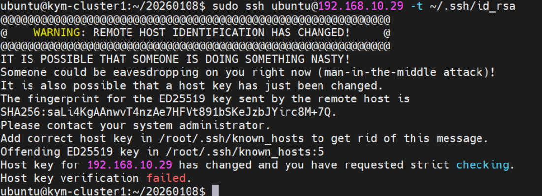 이거는 root경로의 .ssh에 있는 kwoun_hosts를 삭제해주면 가능하다
