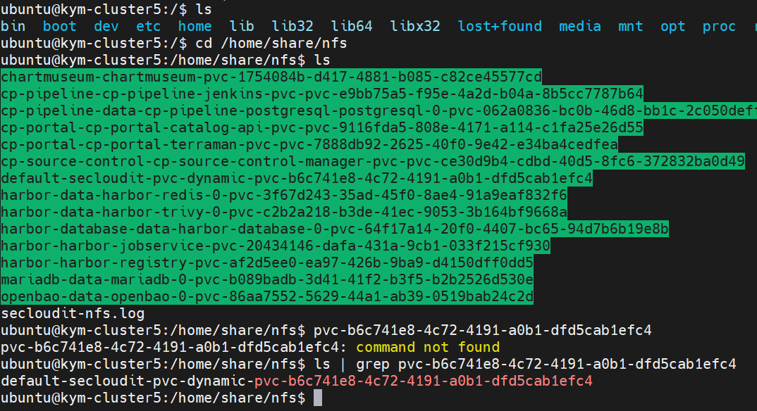 3) PV 자동 생성 및 바인딩: 생성된 전용 폴더에 요청에 맞는 PV를 쿠버네티스가 자동 등록