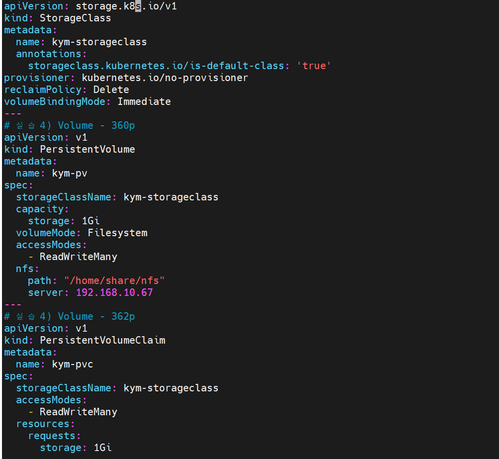 ※ StorageClass= /PV=미리 준비된 저장 공간 / PVC=요청