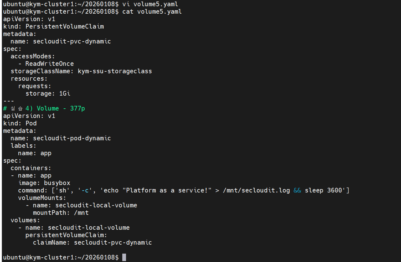 - 장점: 관리자가 일일이 PV를 만들 필요 없음, 낭비 X, 현대 Cloud에 적합